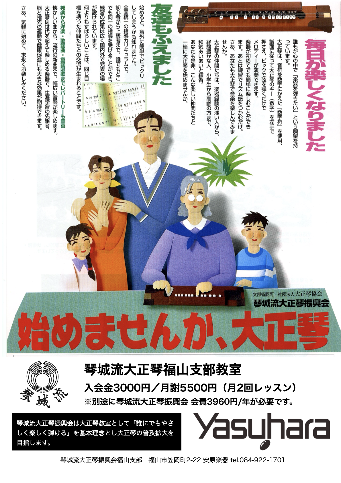 YASUHARA MUSIC STUDIO(安原楽器) 〒720-0044 福山市笠岡町2-22 tel.084-922-1701